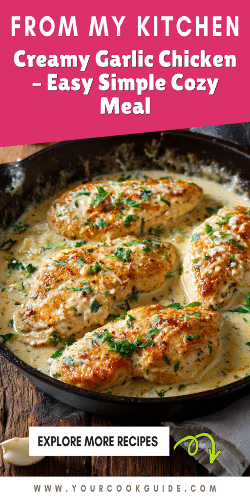 Enjoy your homemade Creamy Garlic Chicken – Easy Simple Cozy Meal Recipe!