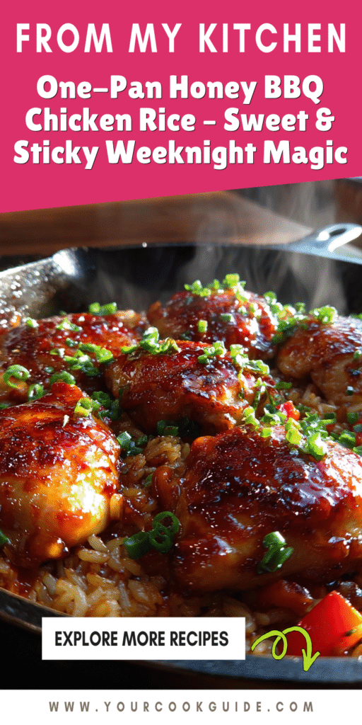 This One-Pan Honey BBQ Chicken Rice – Sweet & Sticky Weeknight Magic is the ultimate go-to for anyone craving a flavorful, fuss-free meal. Whether you’re whipping it up in a skillet for a quick dinner or letting it simmer in a slow cooker for one of those crockpot recipes easy nights, the result is always a hit. The sweet and savory glaze paired with tender chicken and fluffy rice will have everyone asking for seconds. So, grab your ingredients, give this recipe a try, and let it become your new weeknight favorite!